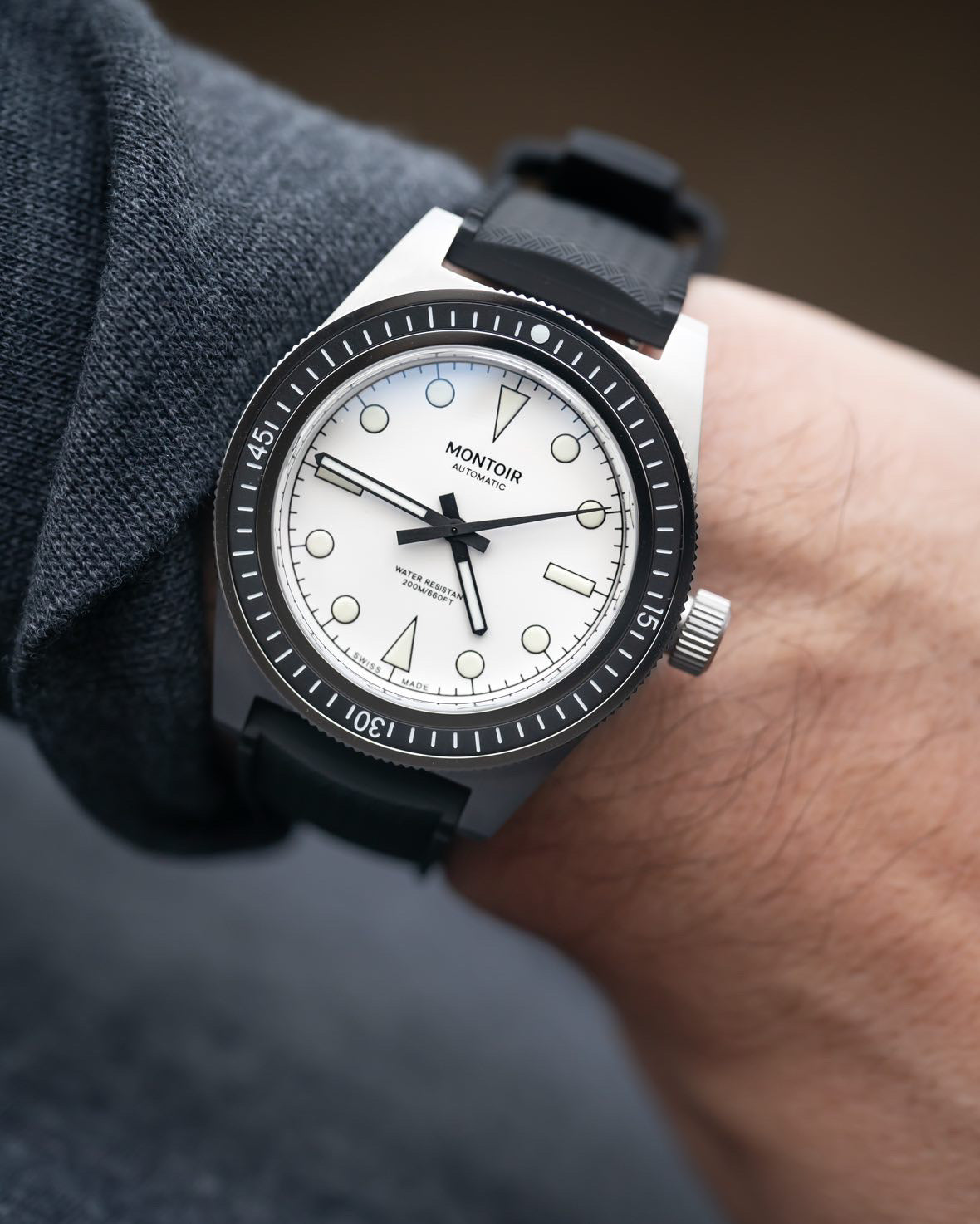 "The new Montoir dive watch is Swiss-made with a vintage-inspired (1960s) aesthetic. The case is well-sized, the specs are solid for serious divers and the automatic movement is well-proven."